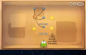 dimanipulasi sekitar hambatan untuk sampai ke mulut Om Nom ini.